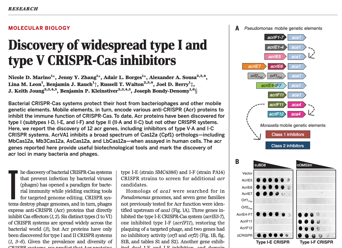 Discovery of widespread type I and type V CRISPR-Cas inhibitors